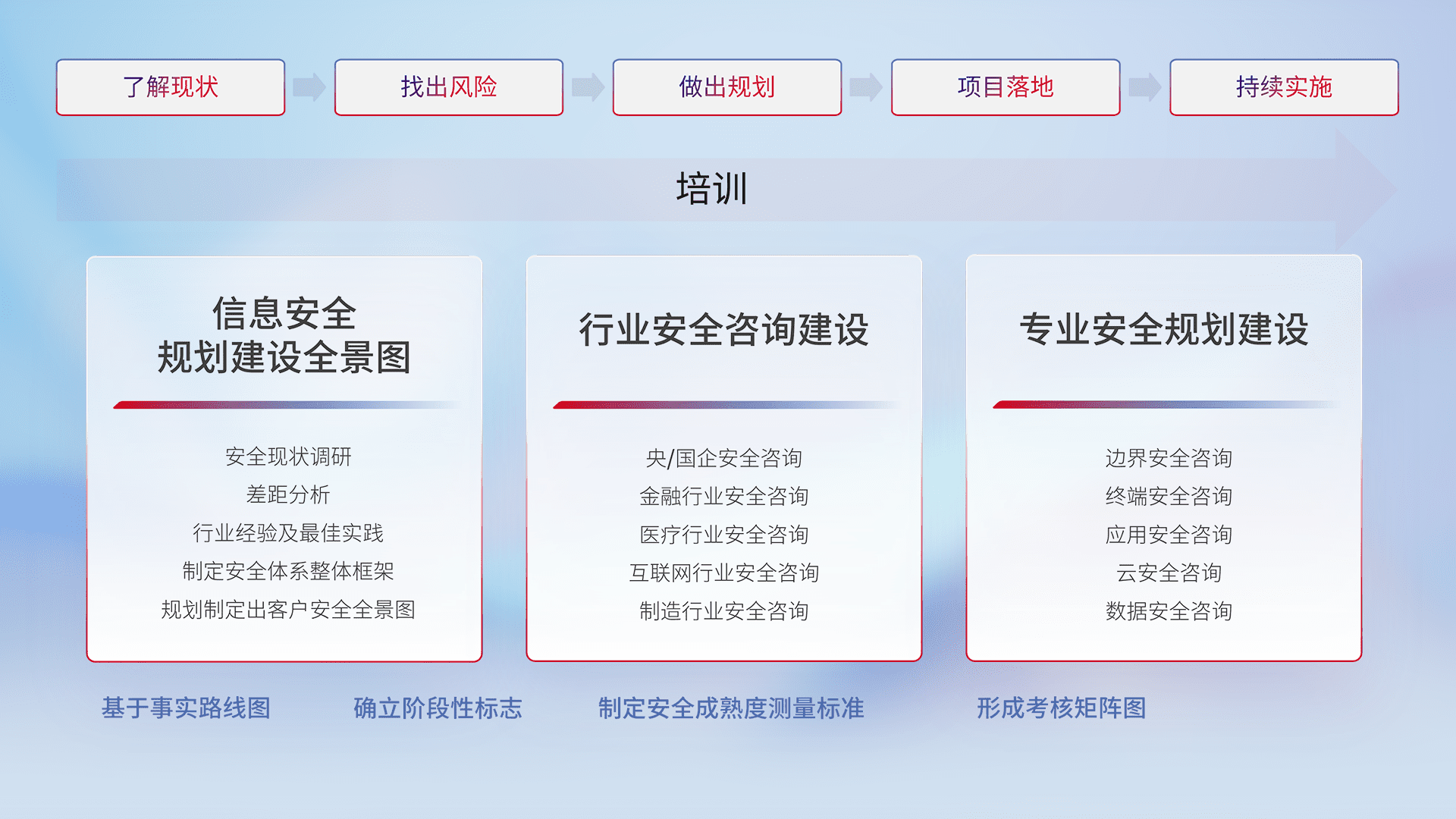 梳理客户信息安全现状调研、、、差距分析结果,,结合行业先进经验及最佳实践,,制订客户的信息安全管控体系总结架构,,,最终形成一个完整的客户信息安全规划与建设的全景图。。。。