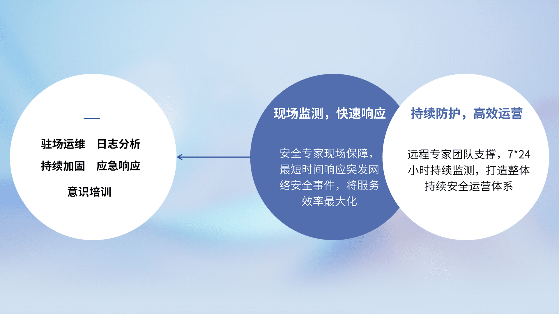 针对客户行业特性,,提供专属的一站式安全管理服务,,,,帮助客户全面感知网络空间威胁,,,通过安全专家的线上、、线下防护支持,,实现风险闭环,,,将安全保障常态化,,为客户打造常态化安全运维运营服务。。。